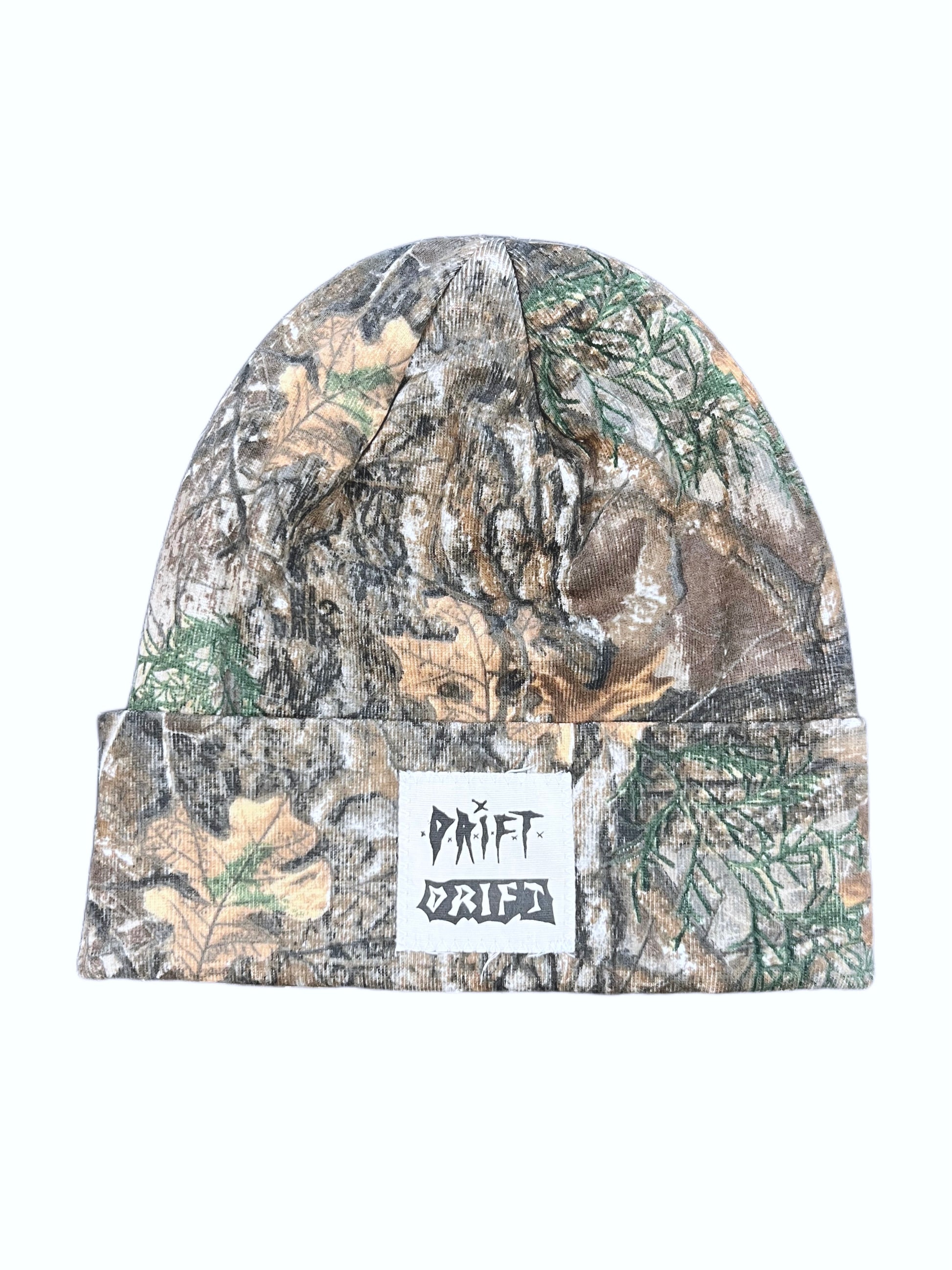 Unisex beanie in Real Tree Camo enhanced with a classic Drift patch on the front.