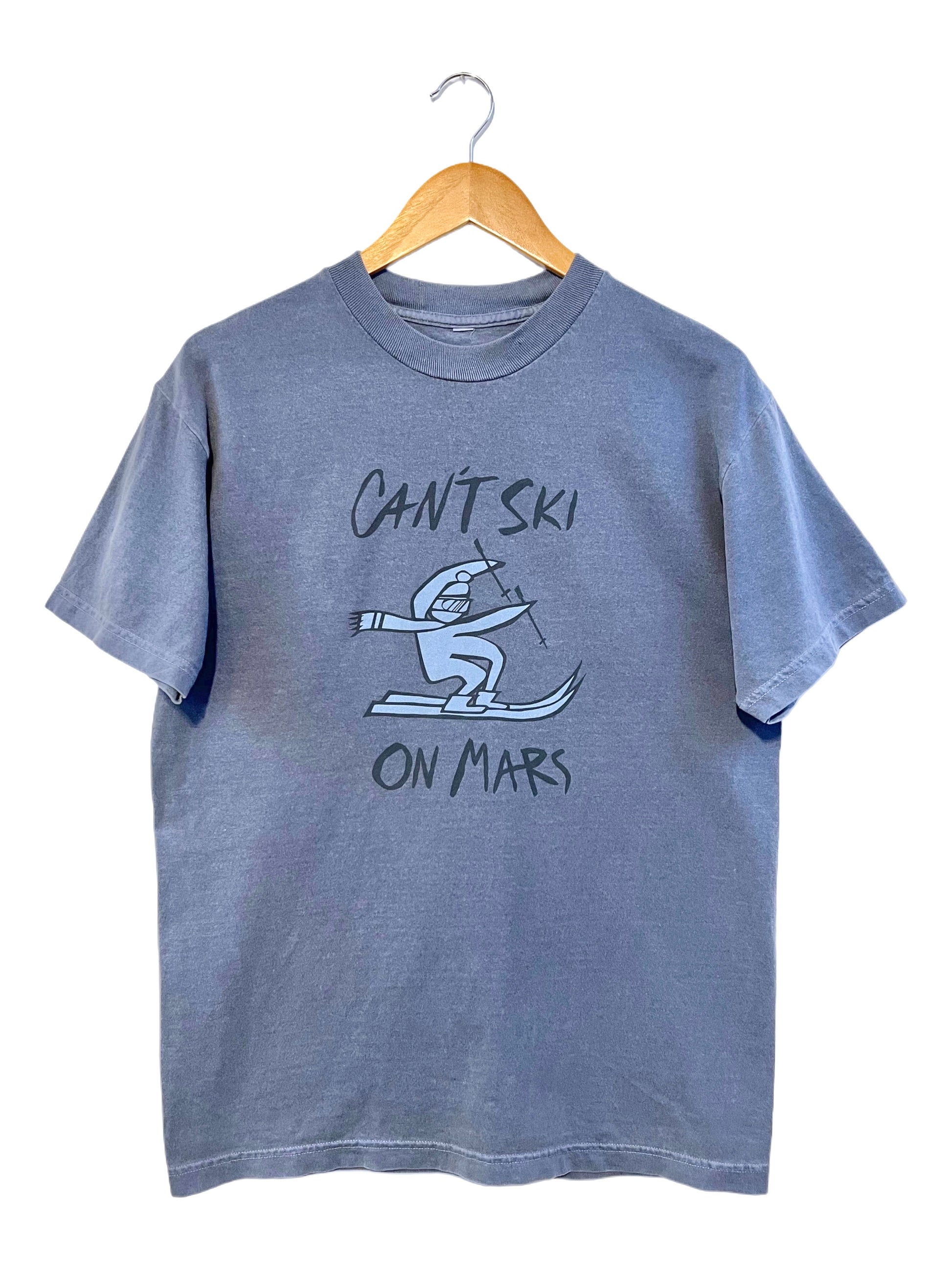 A retro inspired, classic tee in Vintage Navy. Featuring our best selling, limited edition Can't Ski On Mars graphic screen printed on the front using eco-friendly, water based ink.