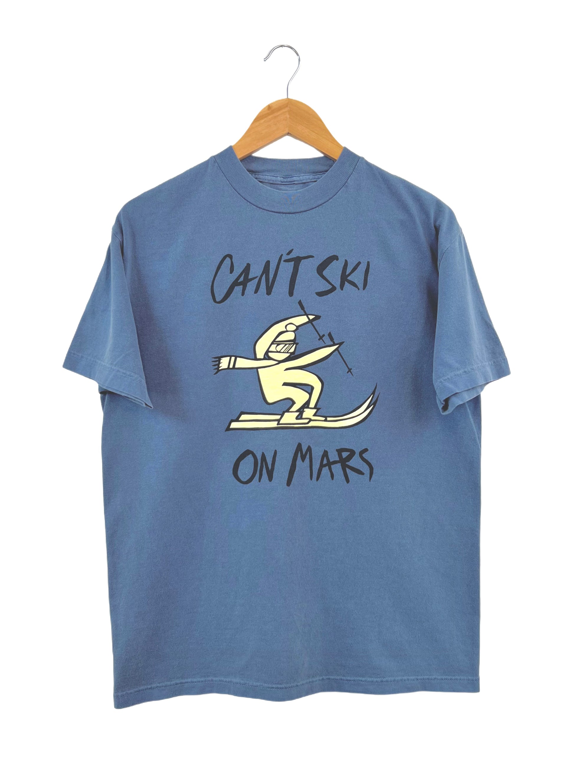 A retro inspired, classic tee in Vintage Navy. Featuring our best selling, limited edition Can't Ski On Mars graphic screen printed on the front using eco-friendly, water based ink.