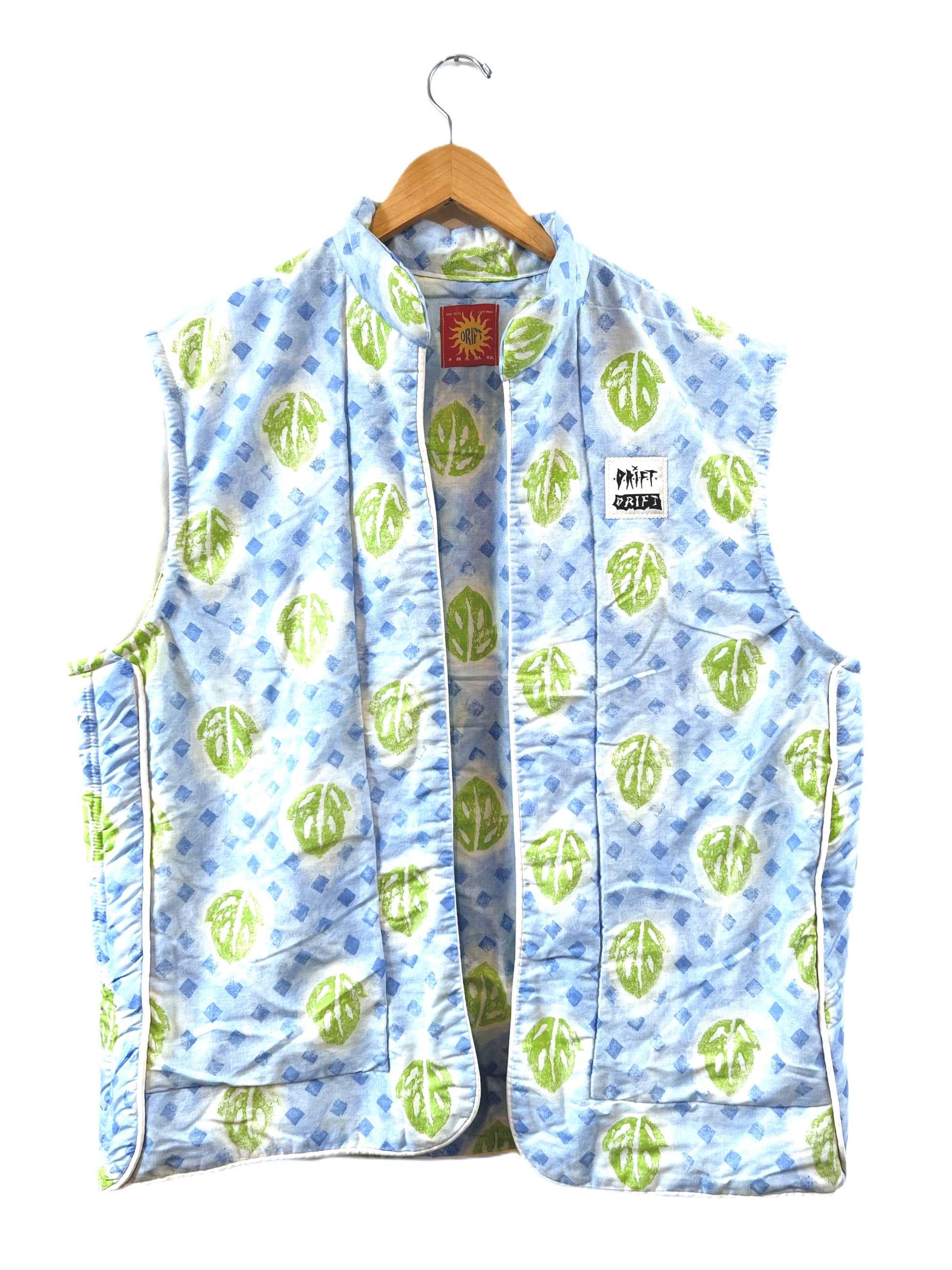 A truly one of a kind quilted vest created entirely from locally sourced, upcycled materials. Individually designed and sewn in-house at Drift.