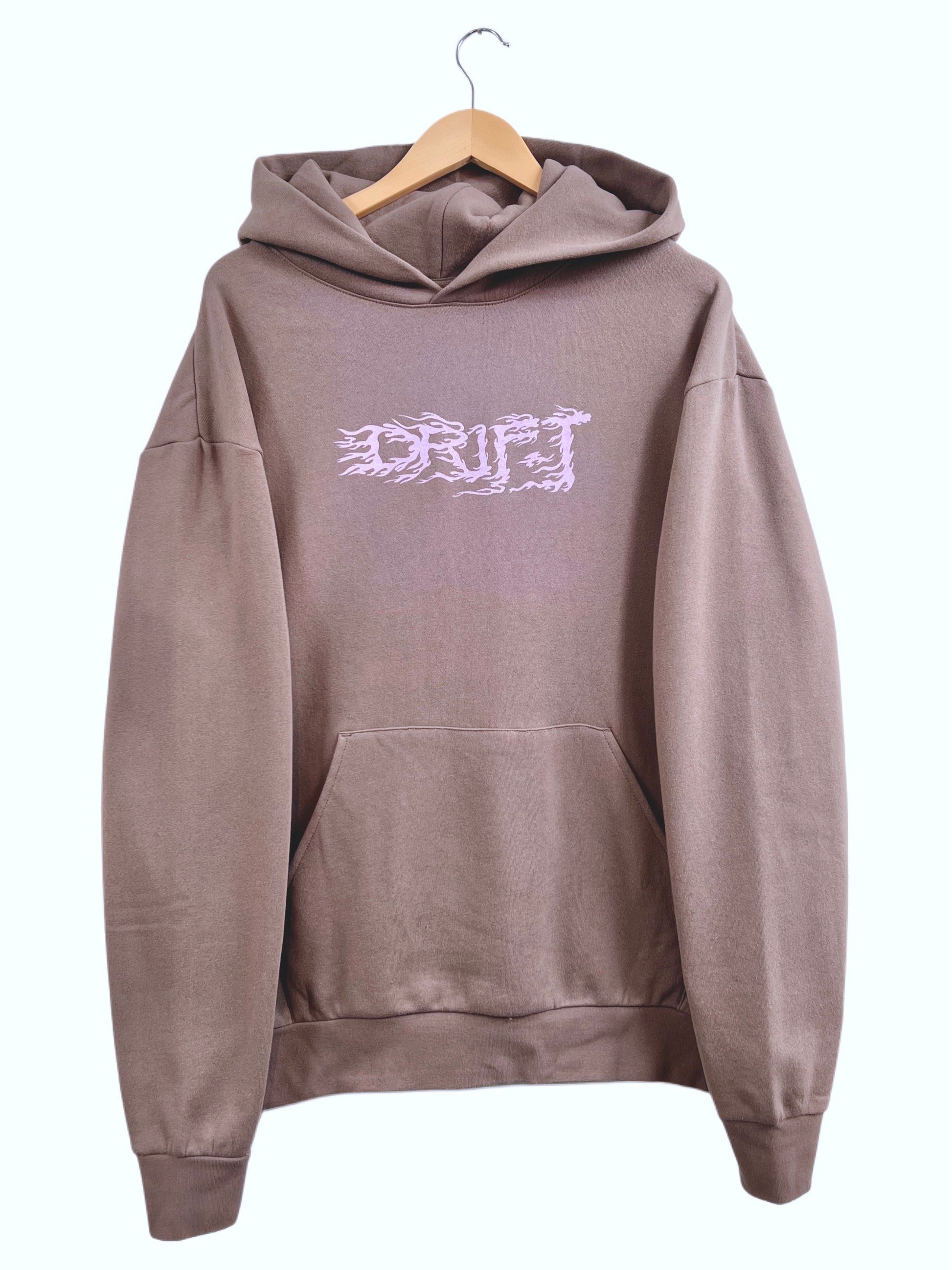 An insanely soft, classic hoodie in Vintage Cocoa. Featuring our best selling Drift Smoke graphic screen printed on the front in Orchid.