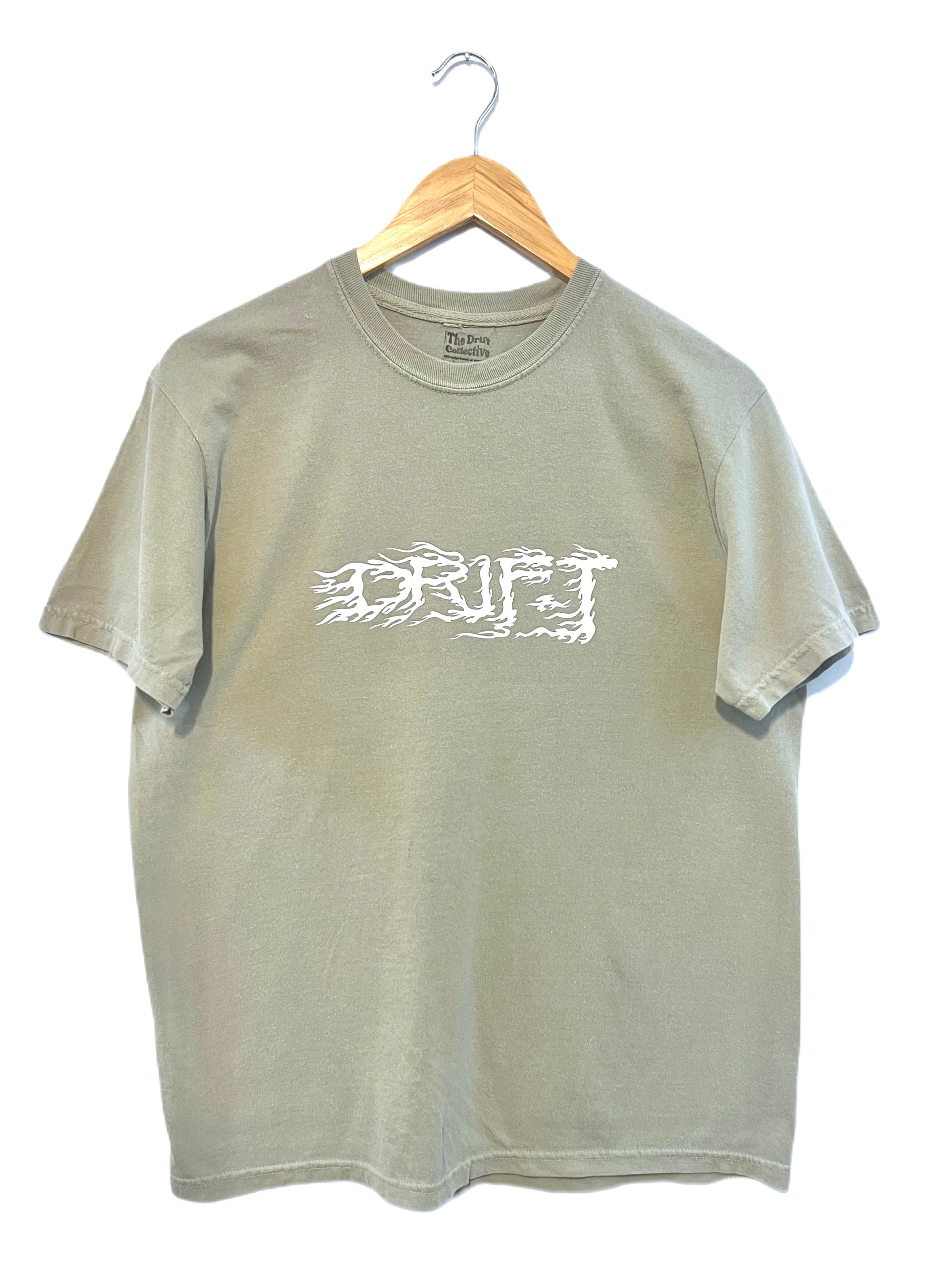 Classic tee in Olive, hand-printed with our Drift Smoke graphic in white.