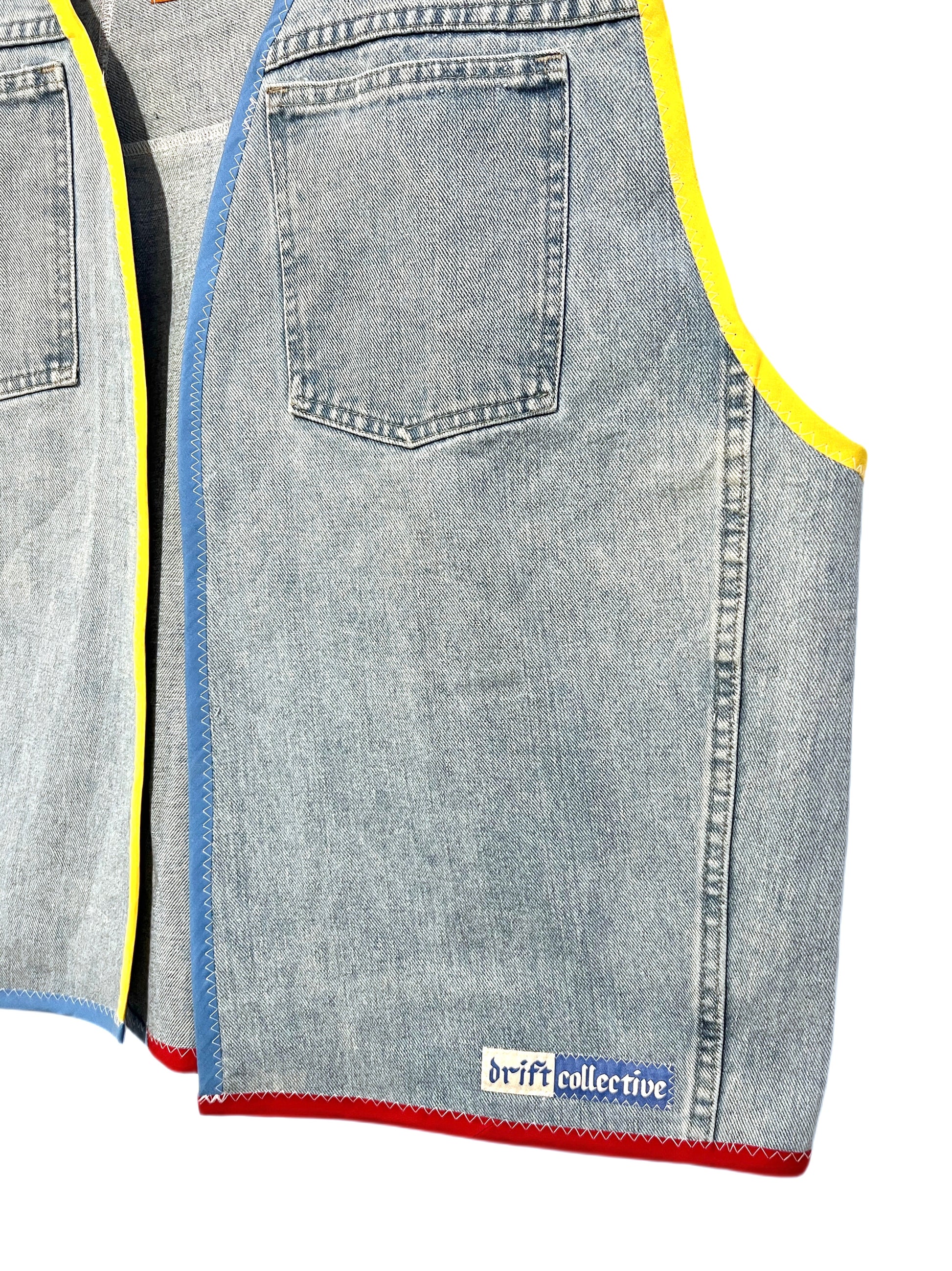 A truly one of a kind cargo created entirely from locally sourced, upcycled materials including pants & shorts that otherwise may have ended up in a landfill. Individually designed and sewn in-house at Drift. Colorblocked hem lines make this style stand out.