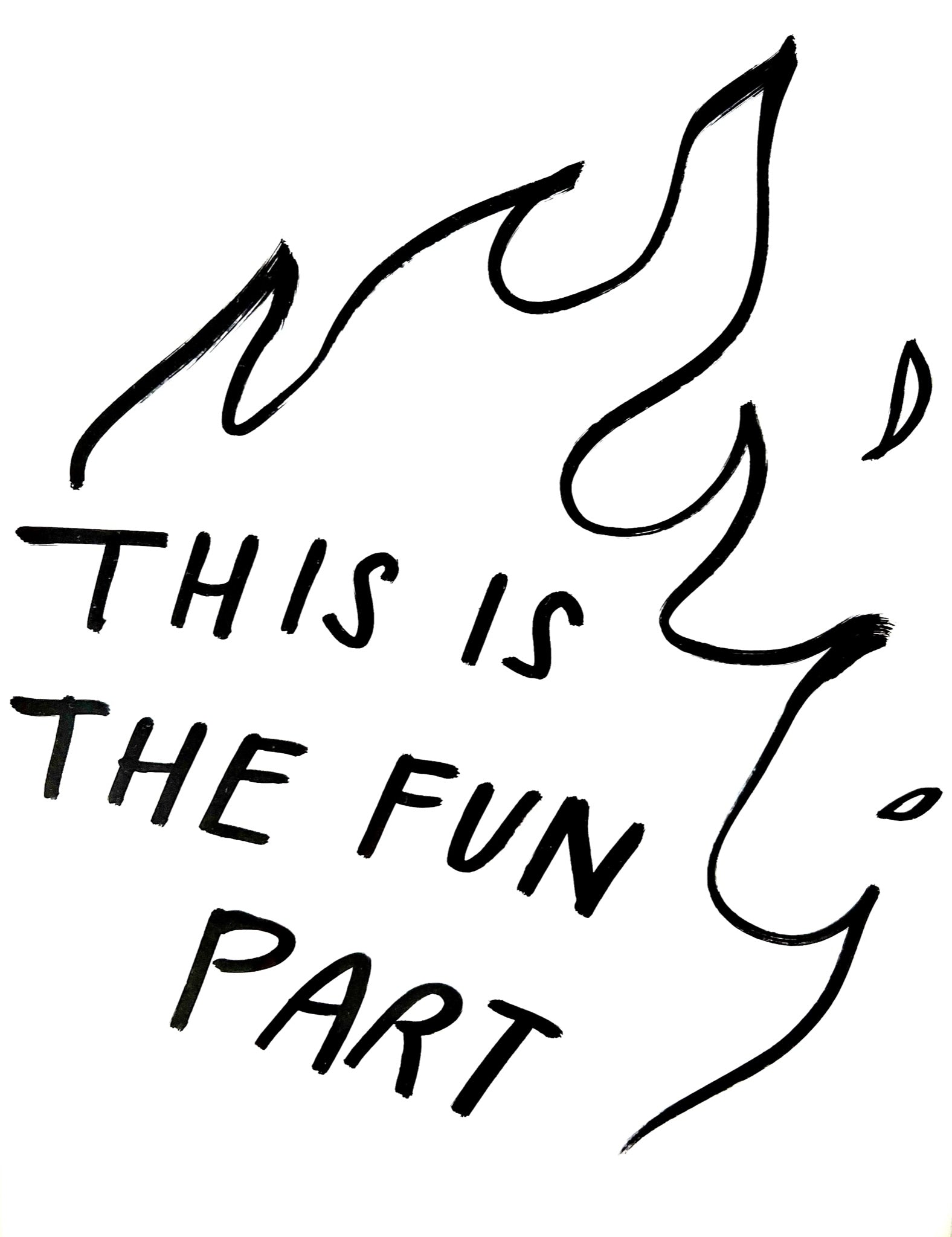Classic tee in spruce, hand-printed with our Fun Part graphic in turquoise.