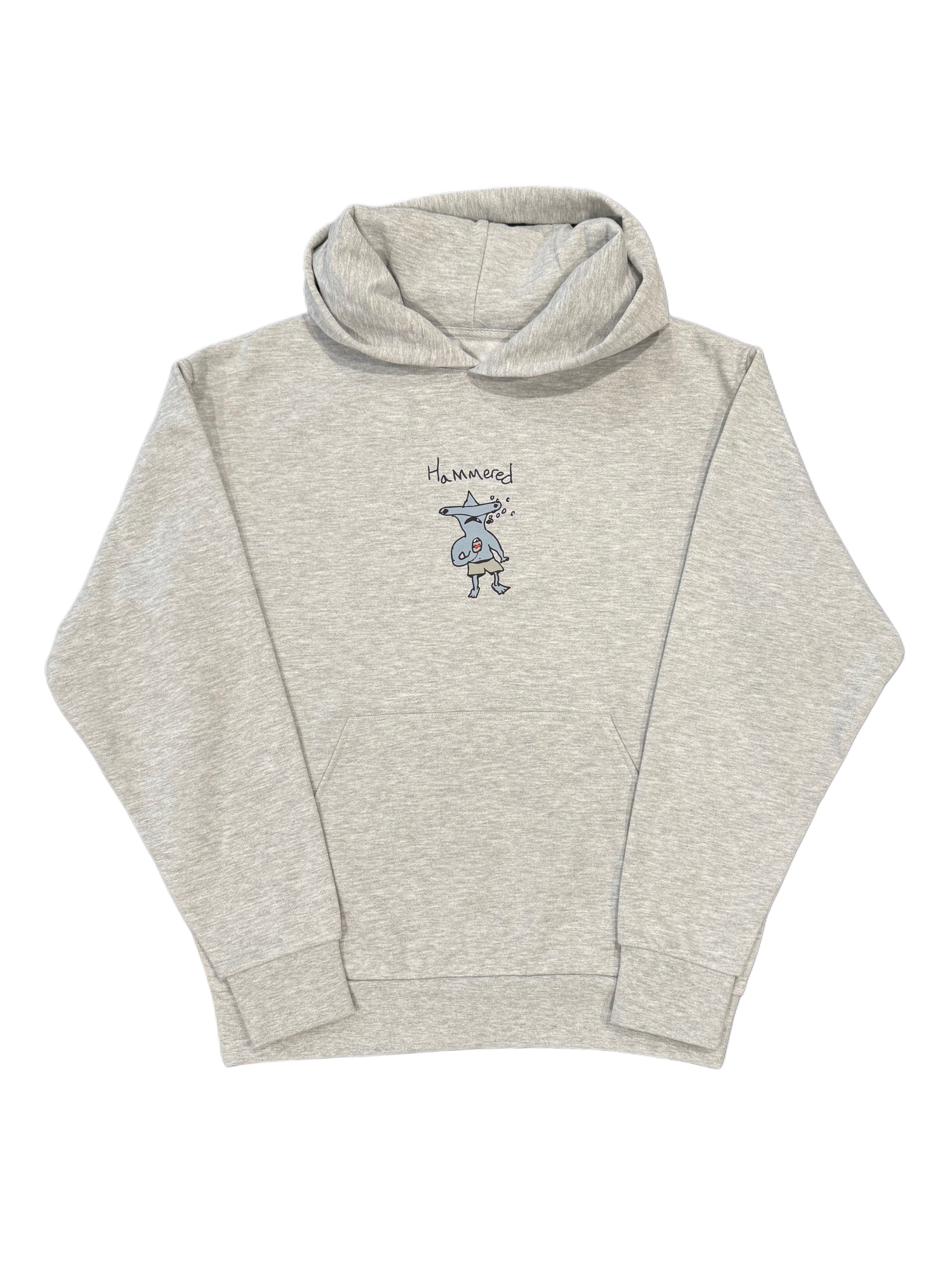 Retro inspired, boxy fit hoodie, in ash grey. Hammeredhead graphic hand printed on the front.