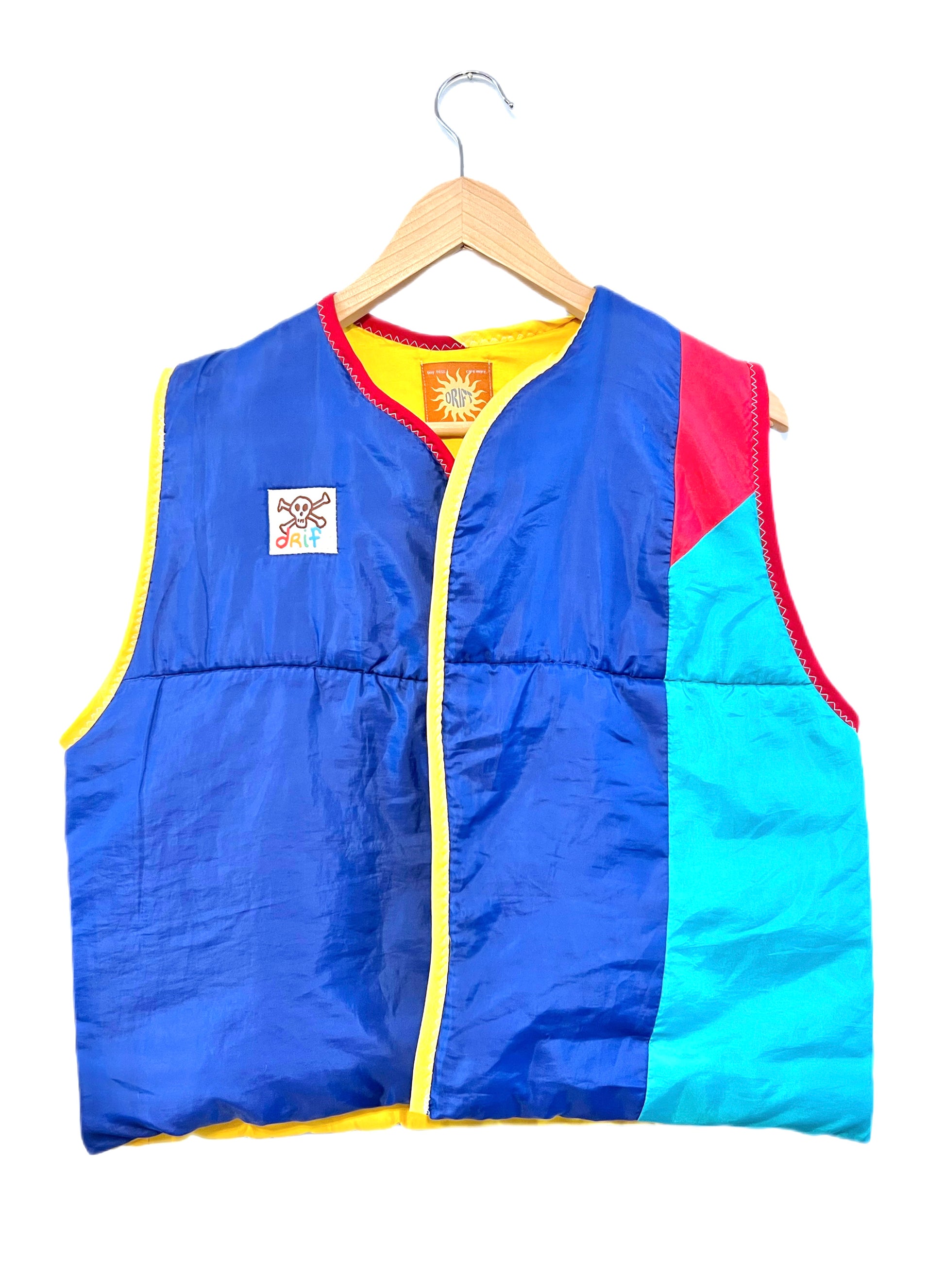 A truly one of a kind quilted vest created entirely from locally sourced, upcycled materials. In this case - a sleeping bag! Individually designed and sewn in-house at Drift.