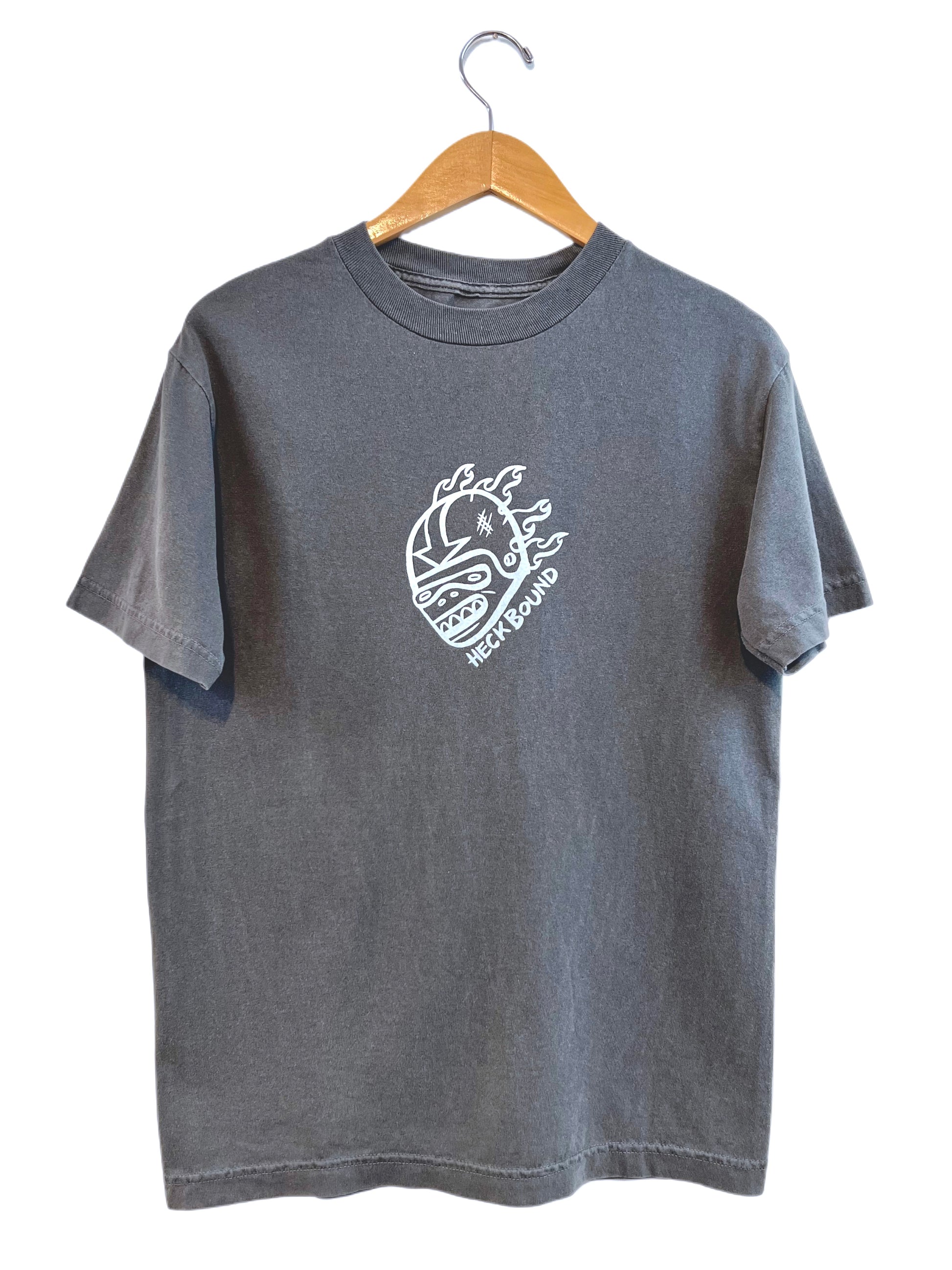 Classic style tee in black constructed and dyed in the USA. Printed in light blue using Eco-Friendly water based ink.