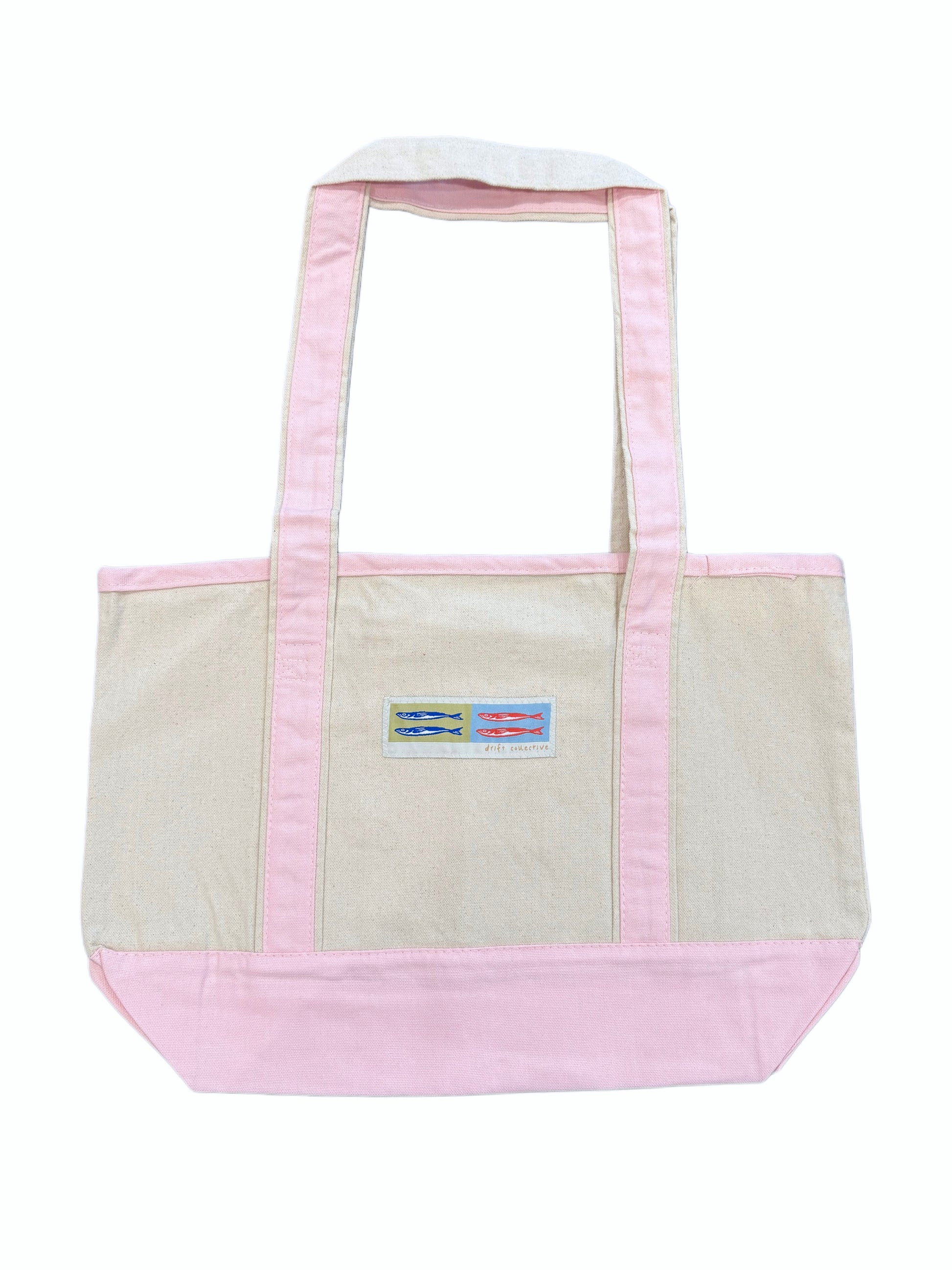 Longer straps perfect for the beach, gym, or farmers market. A classic canvas tote with contrasting pink straps featuring our High Seas patch on the front.