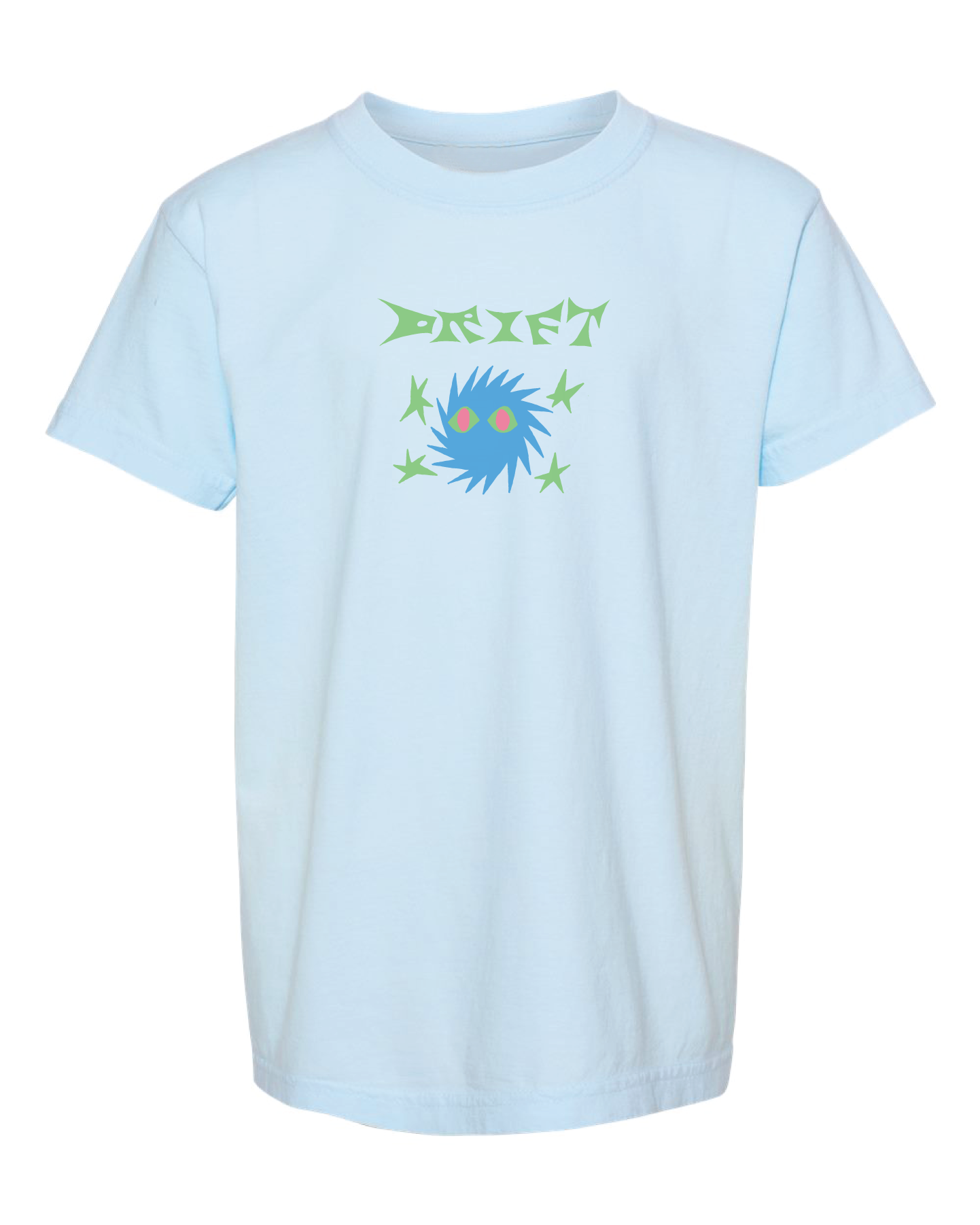 A classic youth tee in Sky Blue. Featuring our Fuzzwad graphic.