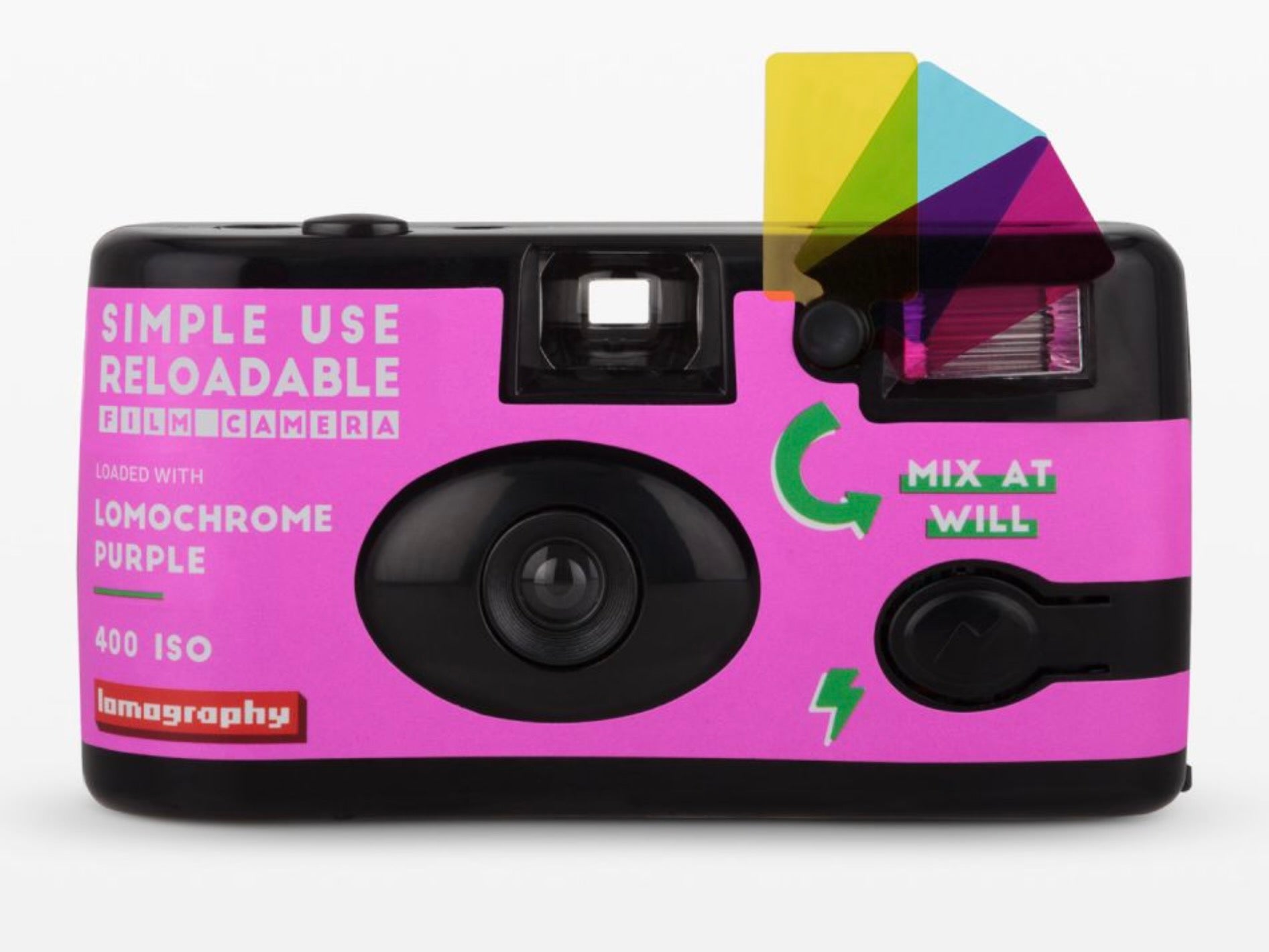 Get that authentic 80s disposable camera aesthetic without creating endless plastic waste. Preloaded with Lomography LomoChrome Purple film for vibrant violet hues.