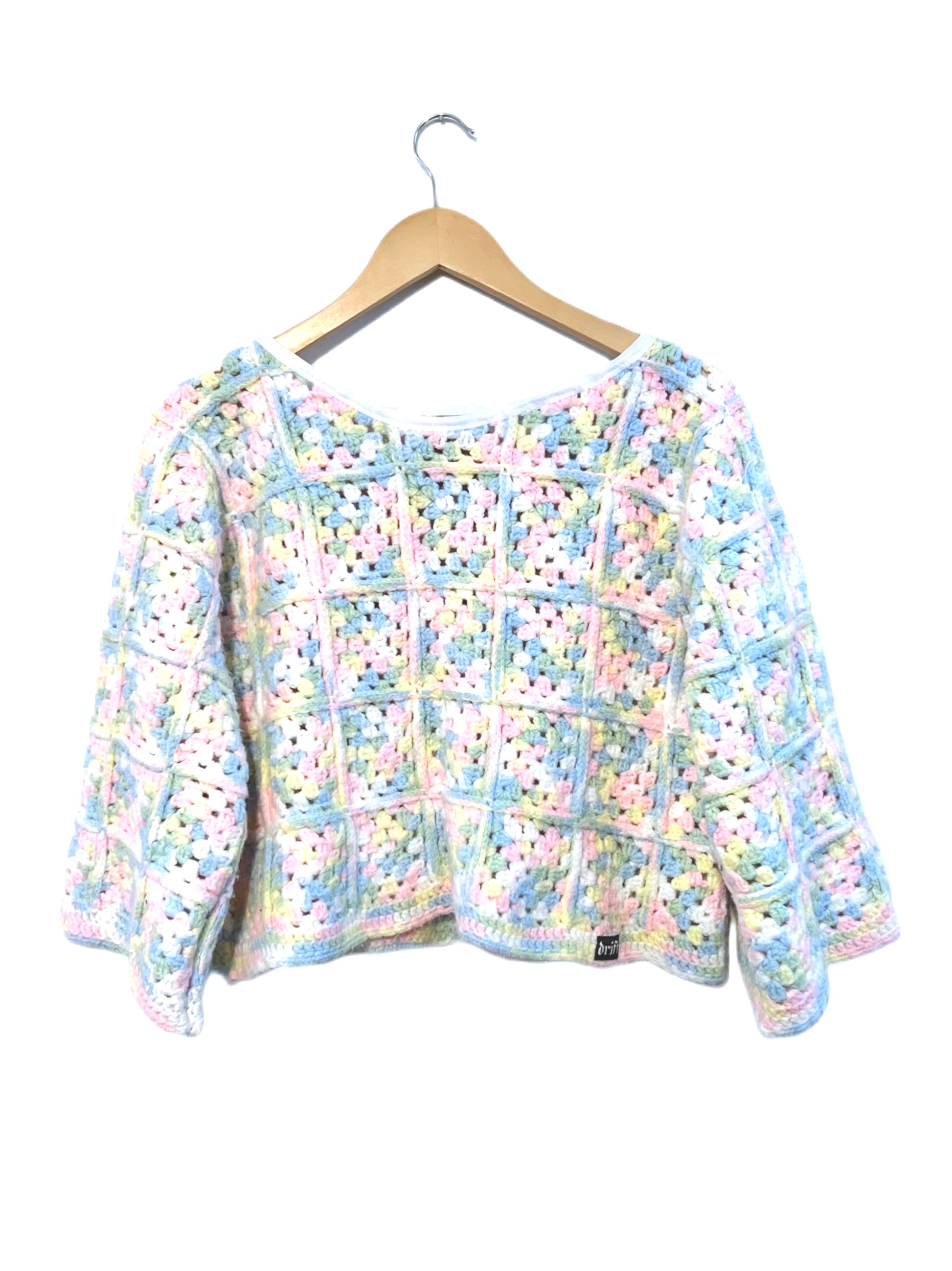 A truly one of a kind crochet sweater created entirely from locally sourced, upcycled materials. Individually designed and sewn in-house at Drift.