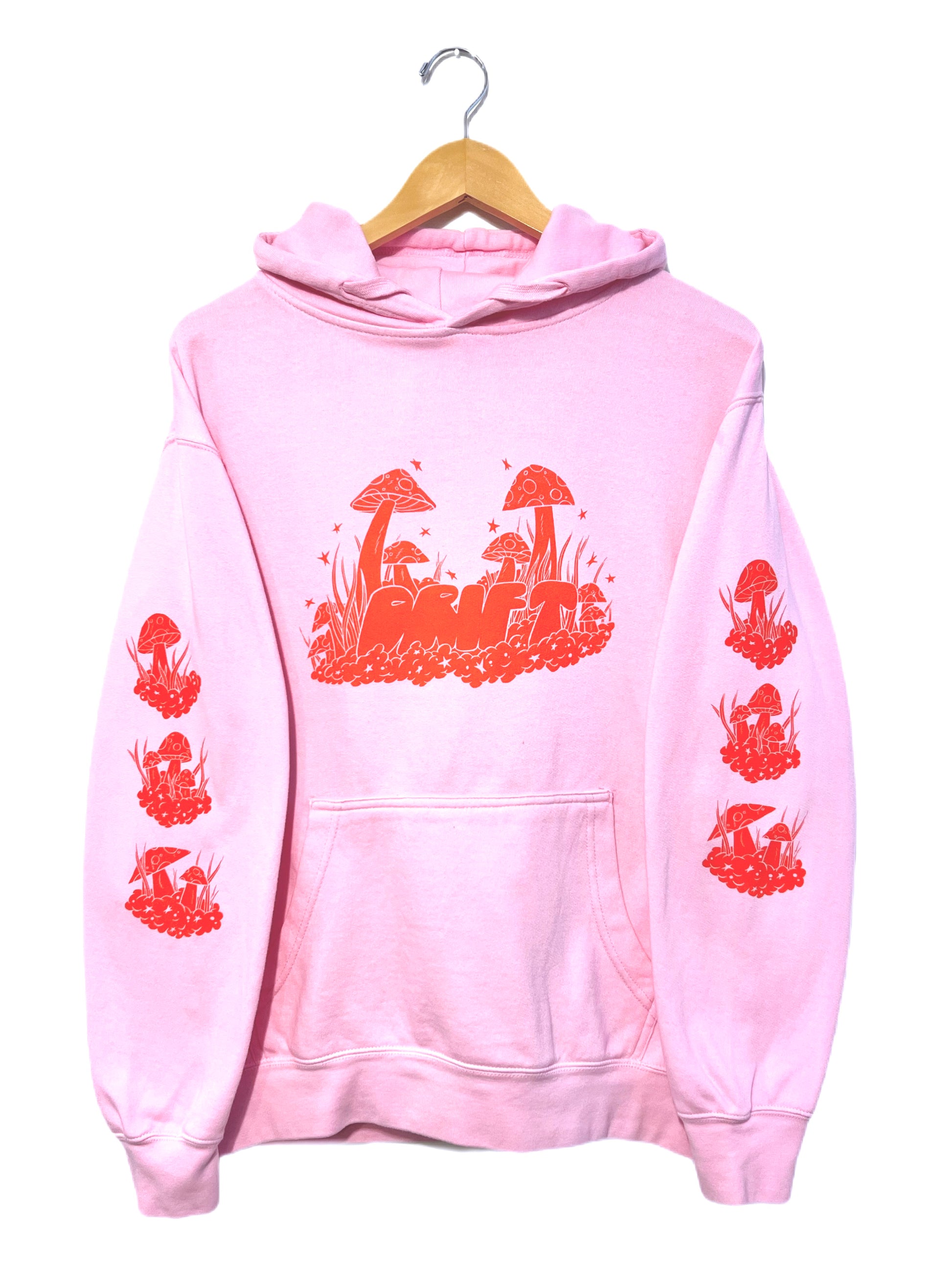 An insanely soft, classic hoodie in Bubblegum. Featuring our Mushy graphic screen printed on the front using eco-friendly, water based ink.