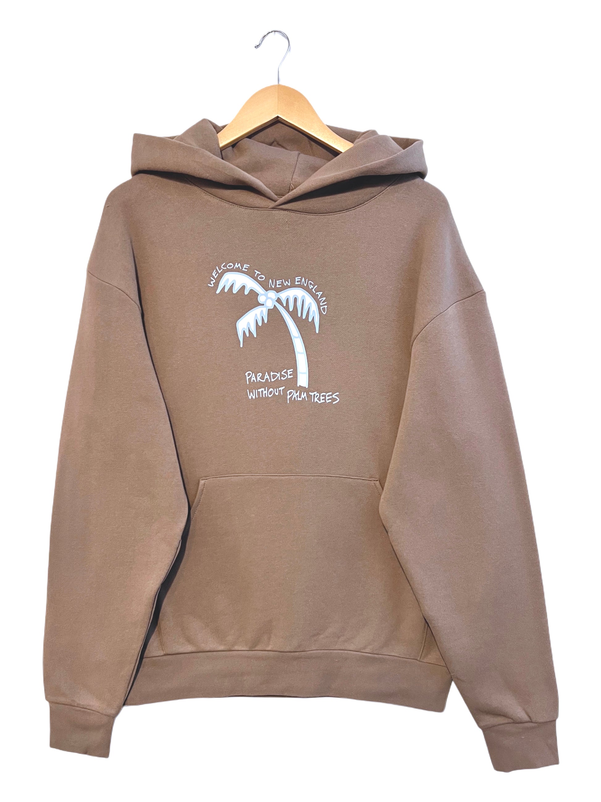 A classic hoodie in the perfect Cocoa Brown. Featuring our Paradise New England graphic on the front in white and blue. A new classic.