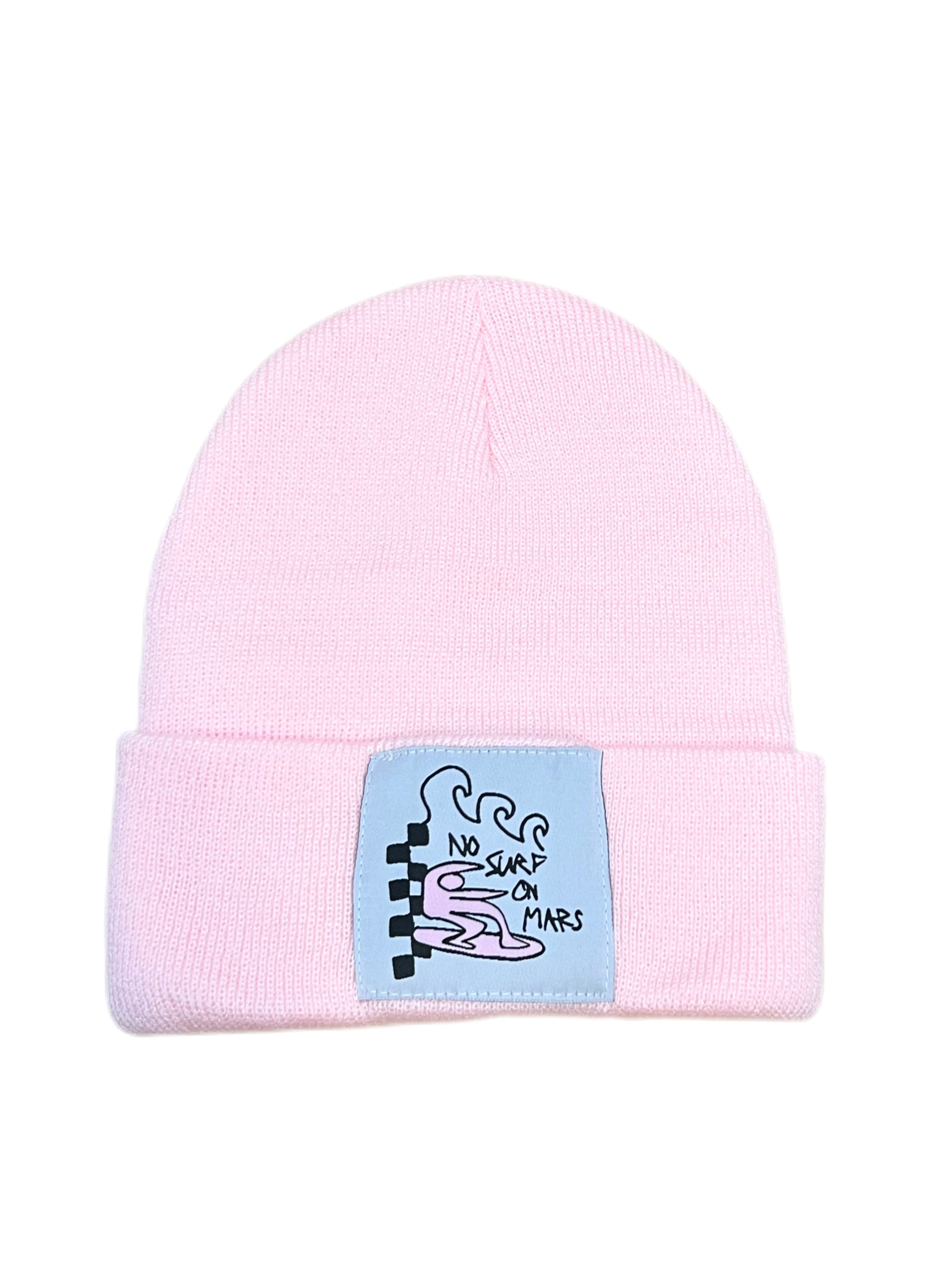 Unisex beanie in Baby Pink with our Planet B patch on cuff.
