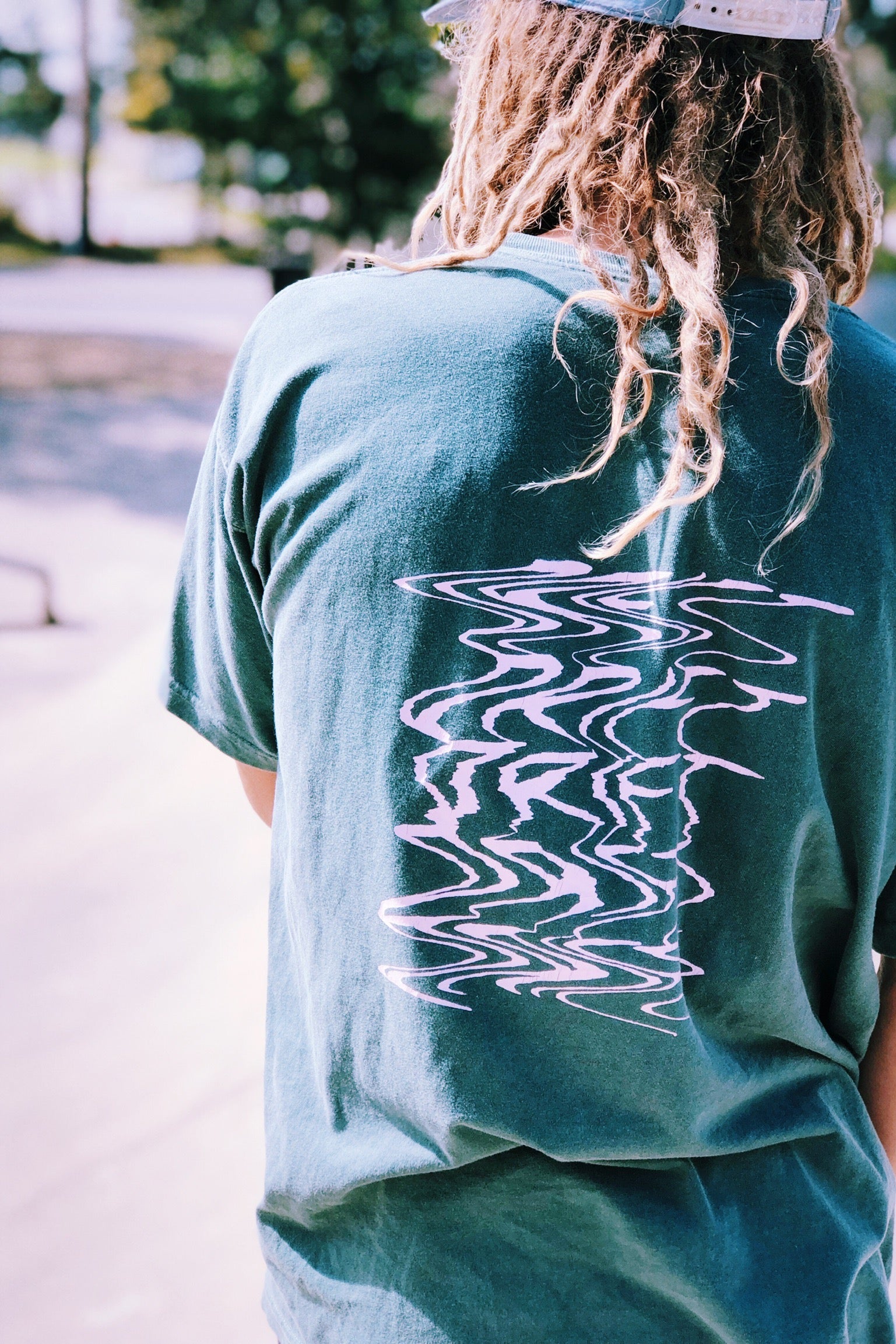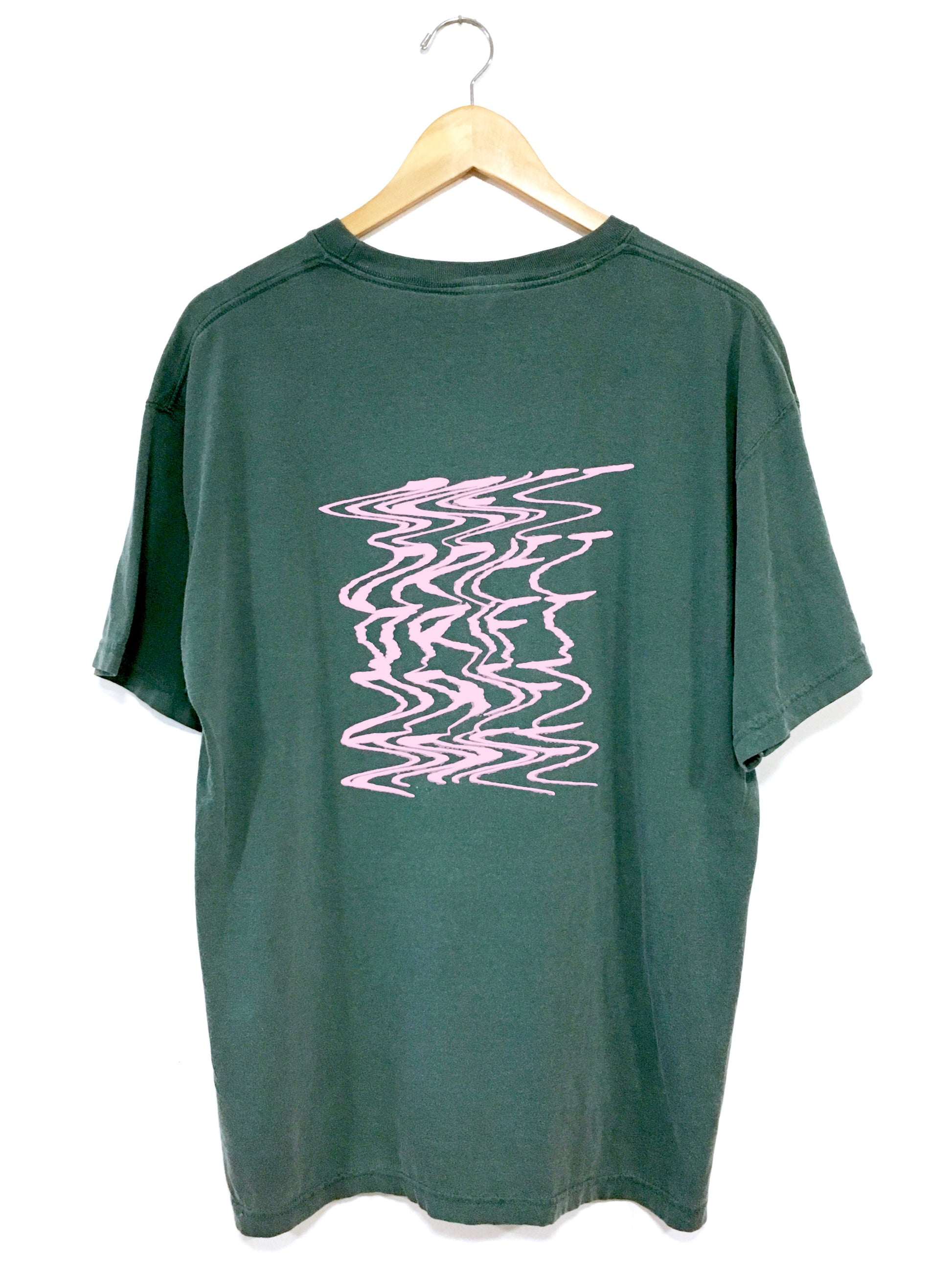 Pigment dyed Forest tee featuring our Radio Noise graphic in bubblegum pink on back and The Drift Collective on front. A new staple.
