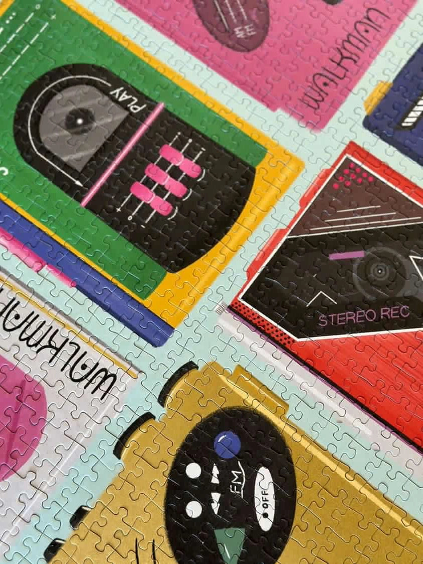 1,000 piece puzzle featuring illustrations of classic walkmans. by acclaimed illustrator Georgia Bacon. The perfect gift for retro lovers.