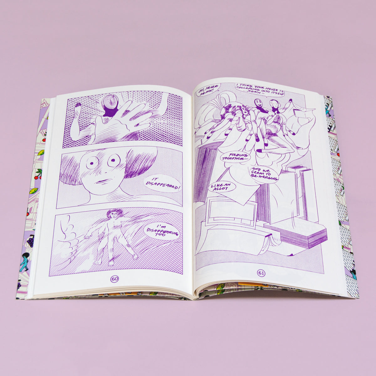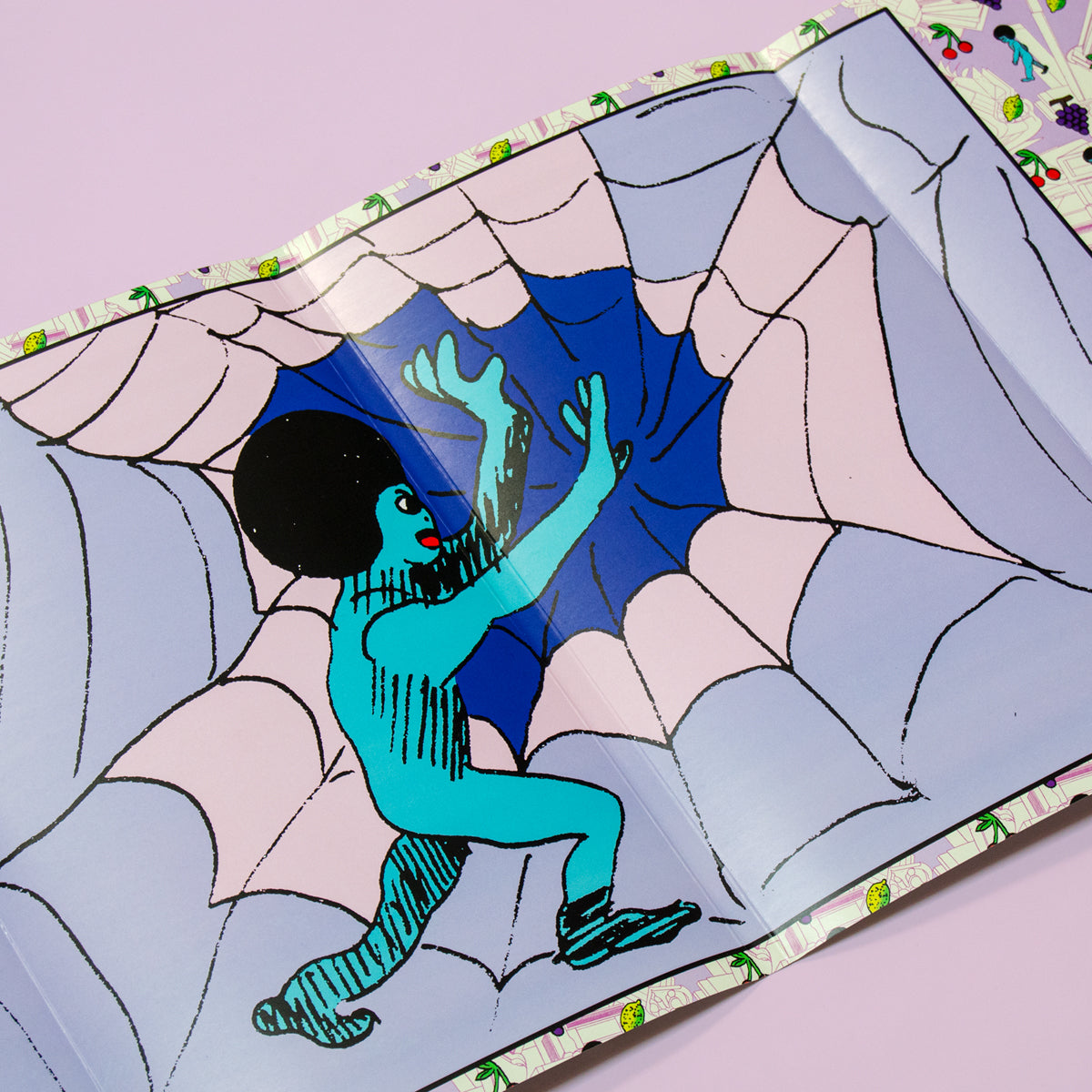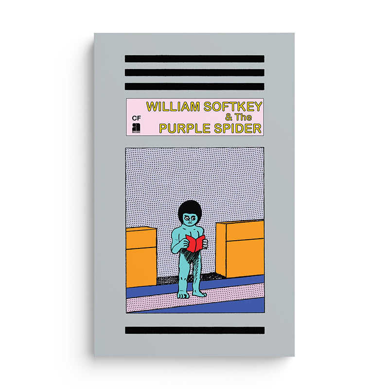Buried deep under sand sits a library the size of a small city, owned by the eerily powerful Mr. Wish and protected by roving bands of toughs and lethal sentient vehicles. When a small but heavy interdimensional spider demands access to the vault, poor William Softkey, with assistance from the gravity-experimenter Gigglewindow sisters, is hired to deal with the problem. Rendered in the artist’s trademark stark linework—against a backdrop of paranoid techno-fantasy, strange emblematic beings, and woozy halftone patterns—William Softkey and the Purple Spider is acclaimed cartoonist CF’s second dreamy narrative published under the Anthology Editions banner.